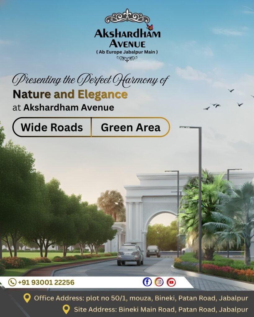 In a world where peaceful living is becoming rare, Akshardham Avenue introduces a refreshing blend of natural beauty, modern planning, and European-style elegance—right in the heart of Jabalpur. Designed for families who value serenity, space, and a premium lifestyle, this township is crafted to deliver an unmatched living experience.